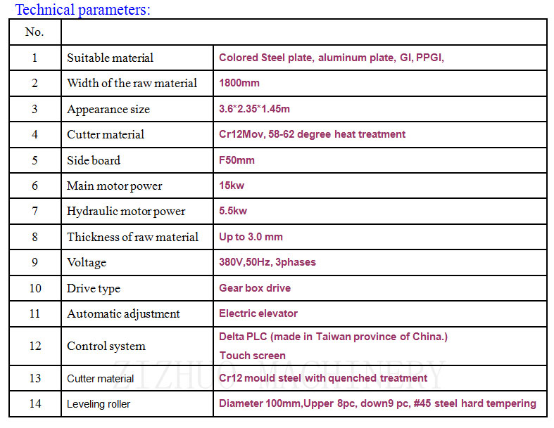 It can cutting steel coils width 1300mm, thickness up to 1.5mm.